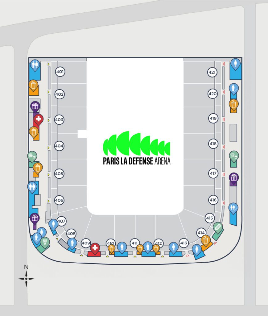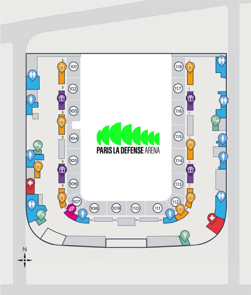 Le plan ci-dessous est découpé en six zones qui vous montrent les différents secteurs de Paris La Défense Arena. Vous pouvez déjà vous repérer dans la salle pour anticiper au maximum votre venue. Attention, chaque événement est unique, il se peut donc que la configuration de la salle soit différente lors de votre venue.