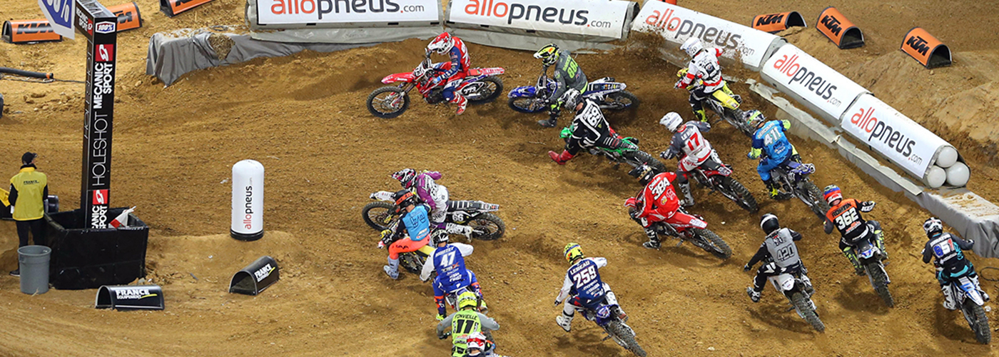 “Par rapport à l’an dernier, le circuit tournera dans le sens opposé et proposera une majorité de virages à gauche -six contre deux- ce qui permet une attaque maximale des pilotes car ils maîtrisent le frein arrière en entrée de virage”, indique Cédric Lucas, qui a en a peaufiné le tracé et les obstacles. “Le départ traversera toute la salle sur une grosse centaine de mètres : ça va débouler plus vite que jamais et, au bout, un double droite très large permettra de recouper les trajectoires. Un vrai holeshot de championnat US !”